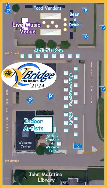 We are bringing the Y-Bridge Arts Festival into Downtown Zanesville this Summer, including an indoor vendor option within the Muskingum County Conference & Welcome Center, and outdoor vendor options between N. 5th Street and N. 4th Street by Secrest Auditorium (see map, below).